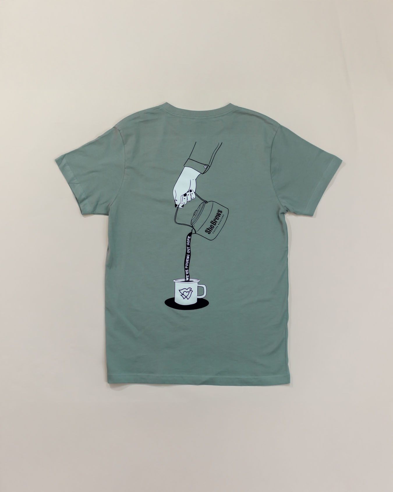 Share a message of inspiration with our Pouring Out Hope T-Shirt in classic black or soft green. Featuring a clean, minimalist design, this shirt embodies the heart of She Brews Coffee Roasters’ mission to bring transformation and hope to women through second chances.
